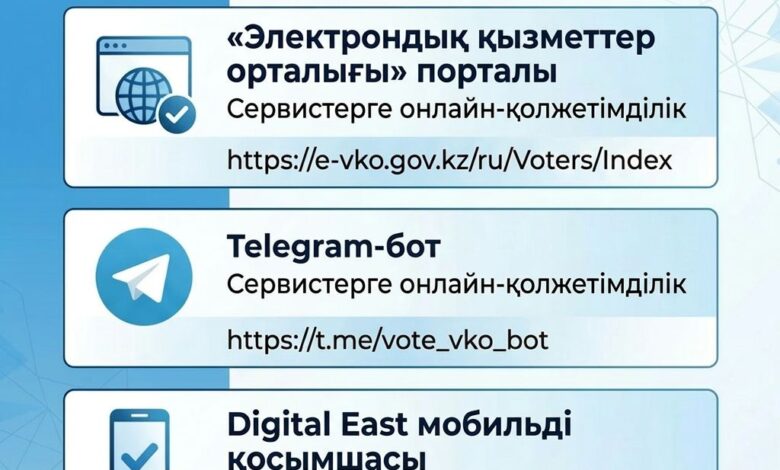 – «Электрондық қызметтер орталығы» порталы—https://e-vko.gov.kz/ru/Voters/Index арқылы;