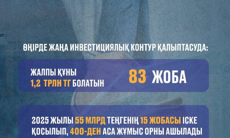 Аталған жобалар өңір экономикасын әртараптандыруға, өндіріс көлемін арттыруға және жаңа жұмыс орындарын құруға мүмкіндік береді. Жоспарға сәйкес, биыл жалпы құны 55 млрд теңге болатын 15 жоба іске қосылады.